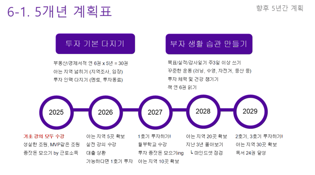 비전보드 실현을 위해 5년 단위로 20년 계획을 세워봅시다. (2025/ 2030/ 2035/ 2040/ 2045년)