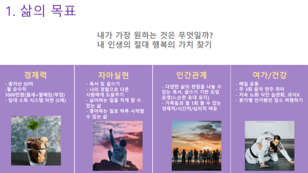 큰 방향성을 마음에 품고 살아간다면 근처라도 도달하지 않을까 싶다.