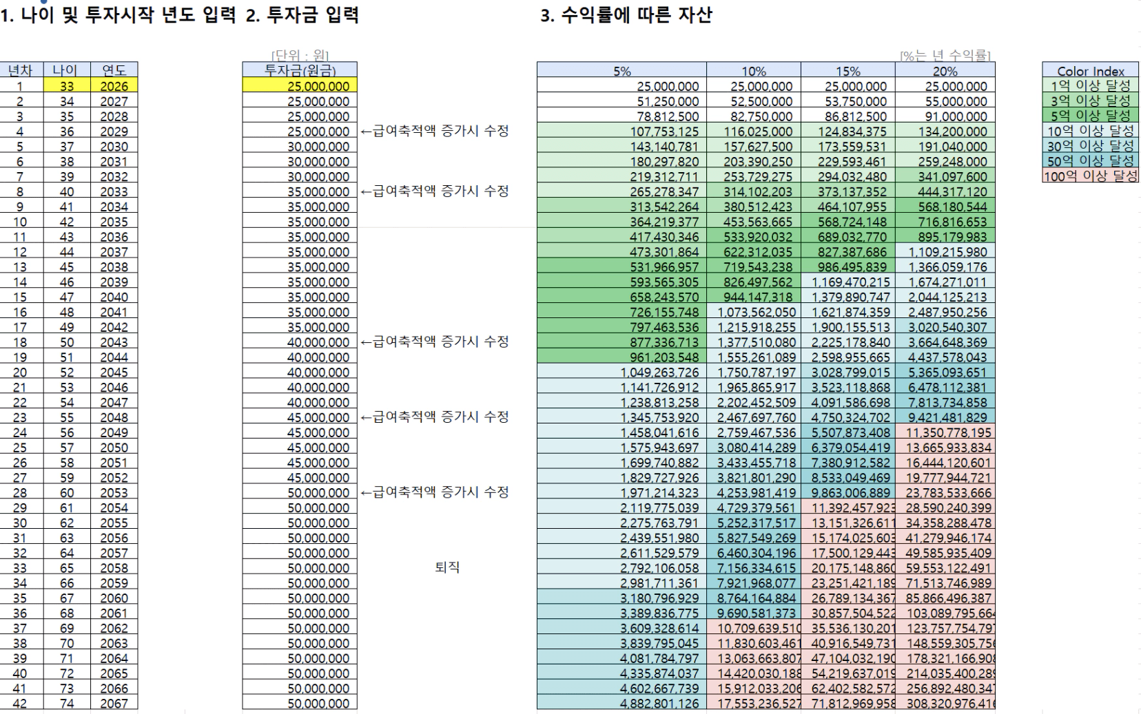 STEP4. 수익률에 따른 은퇴 가능 나이