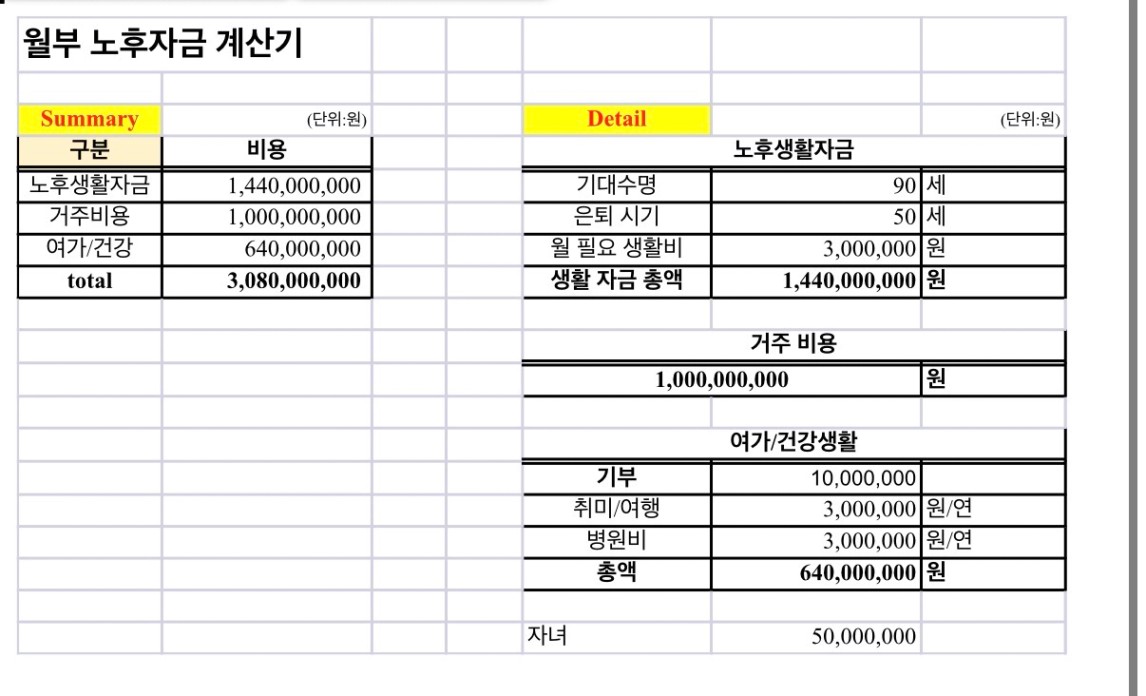 필요한 노후 자금 합계 ▶ 총 35억 8천