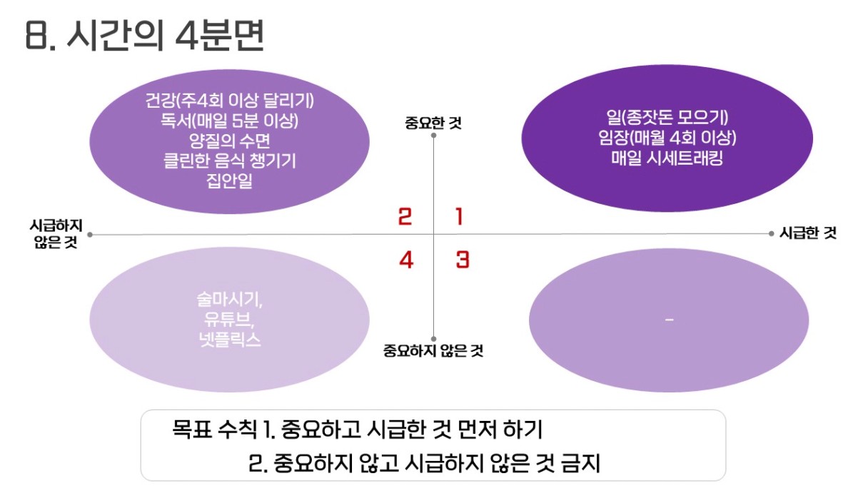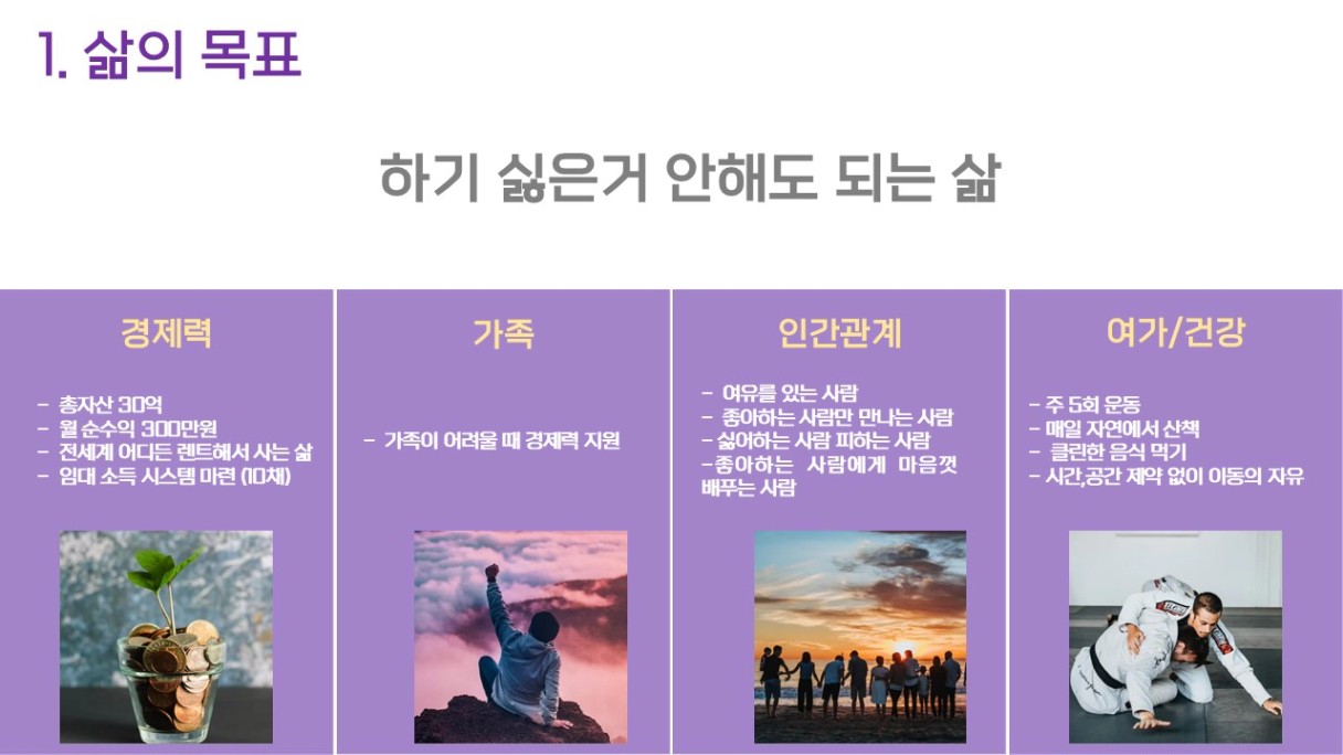 그때 또 삶의 목표를 다시 계획하는 행동을 해야 할 것 같습니다.