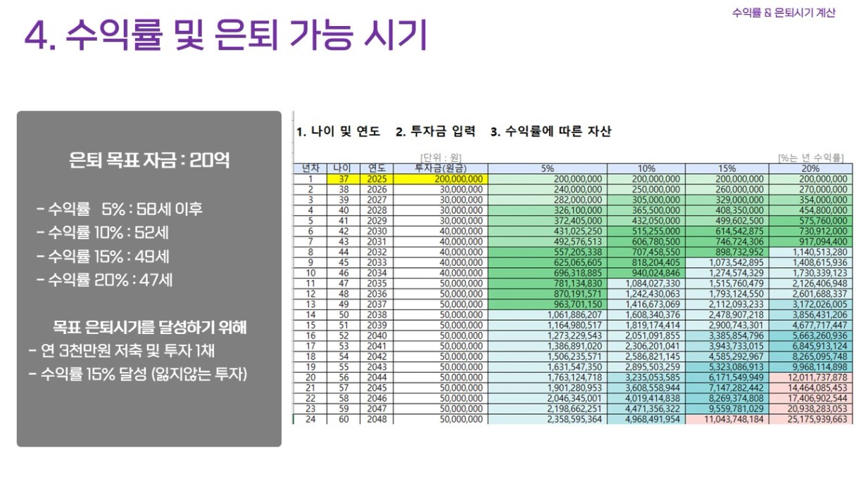 수익율 연 15프로 달성 했을때 20억 목표달성이 가능하네요.