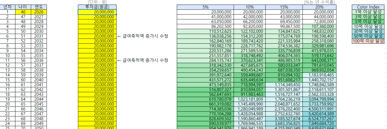 STEP4. 수익률에 따른 은퇴 가능 나이