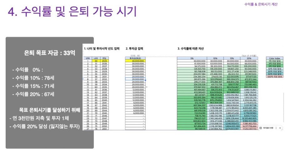 STEP4. 수익률에 따른 은퇴 가능 나이