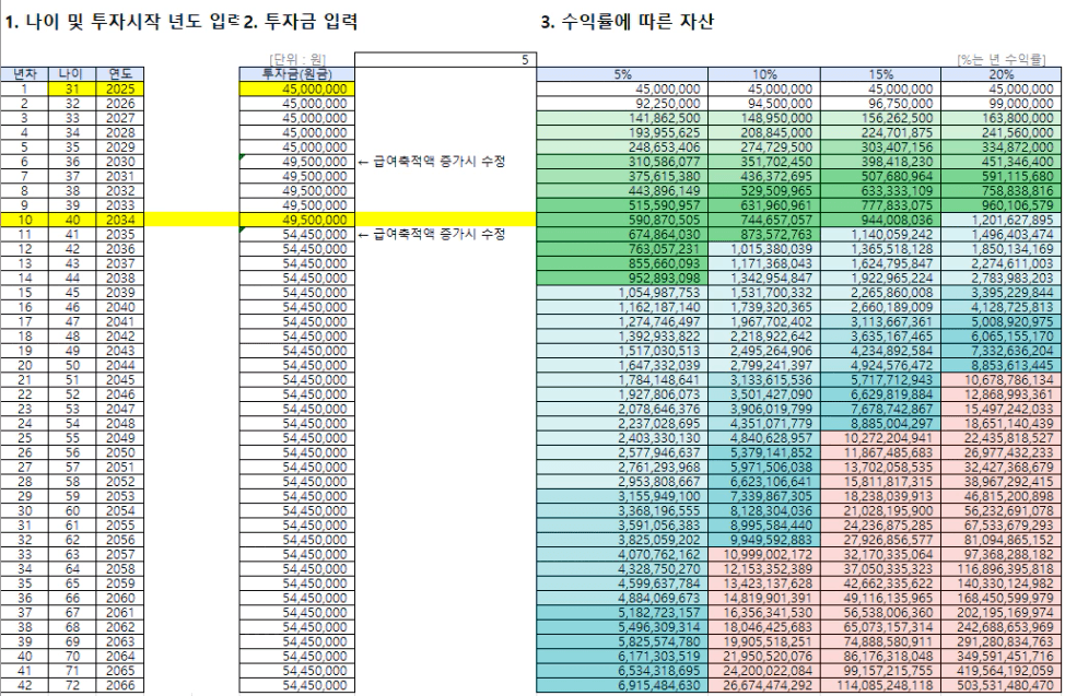 STEP4. 수익률에 따른 은퇴 가능 나이