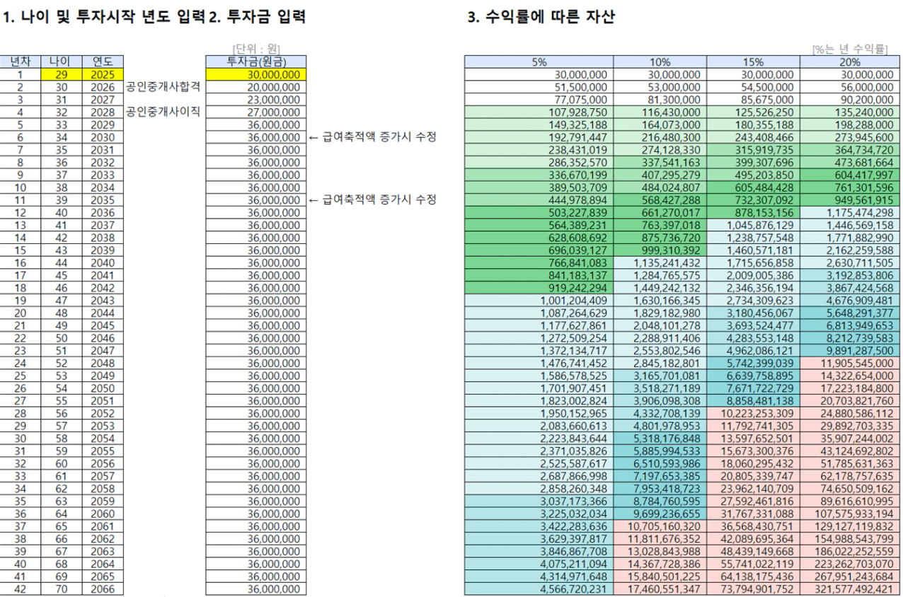 목표 금액 41.6억 (현재 나이 29세, 연저축액 3000만원에서 시작)