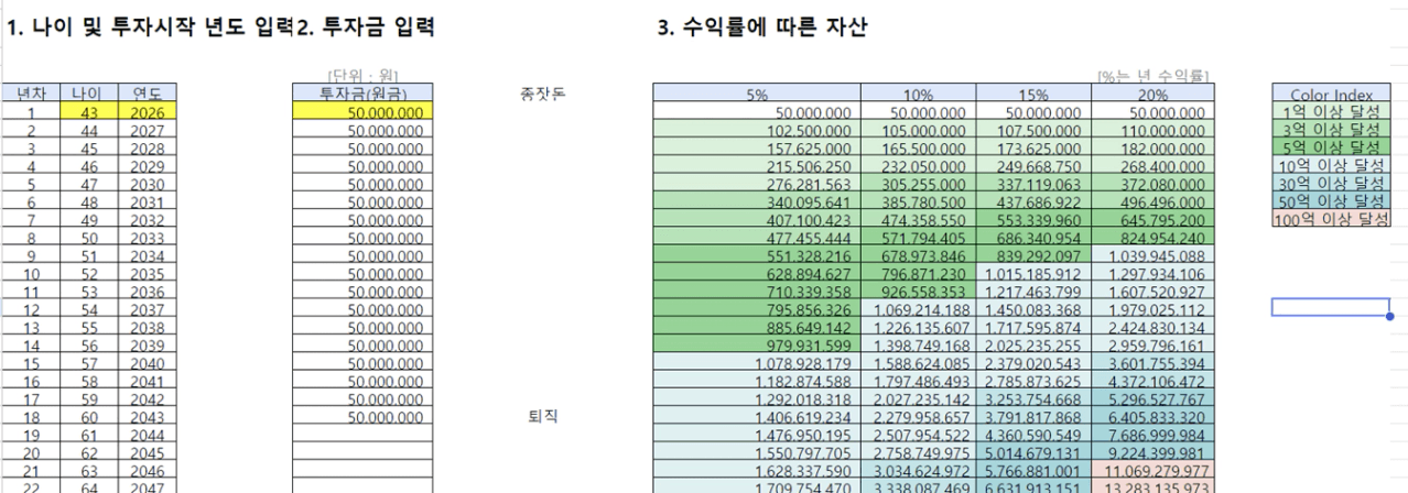 STEP4. 수익률에 따른 은퇴 가능 나이