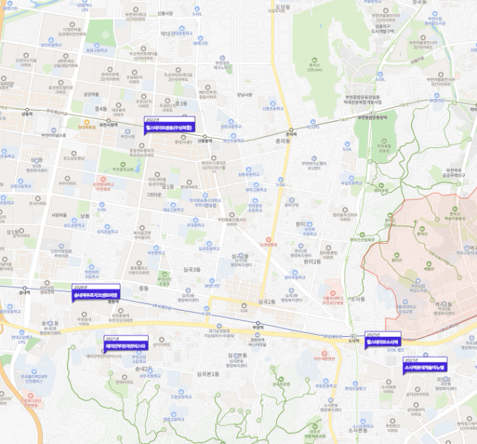 수도권 부천에서 5년 이내, 10년 이내 신축의 비율의 모습입니다.