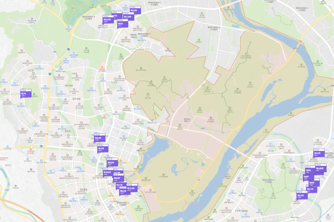 세종시의 5년 이내 , 10년 이내 단지들의 모습인데요.