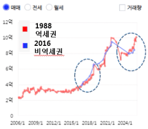 여기서 알수 있는 것은 투자의 본질은 ‘연식’보다 ‘입지요소=가치’입니다.