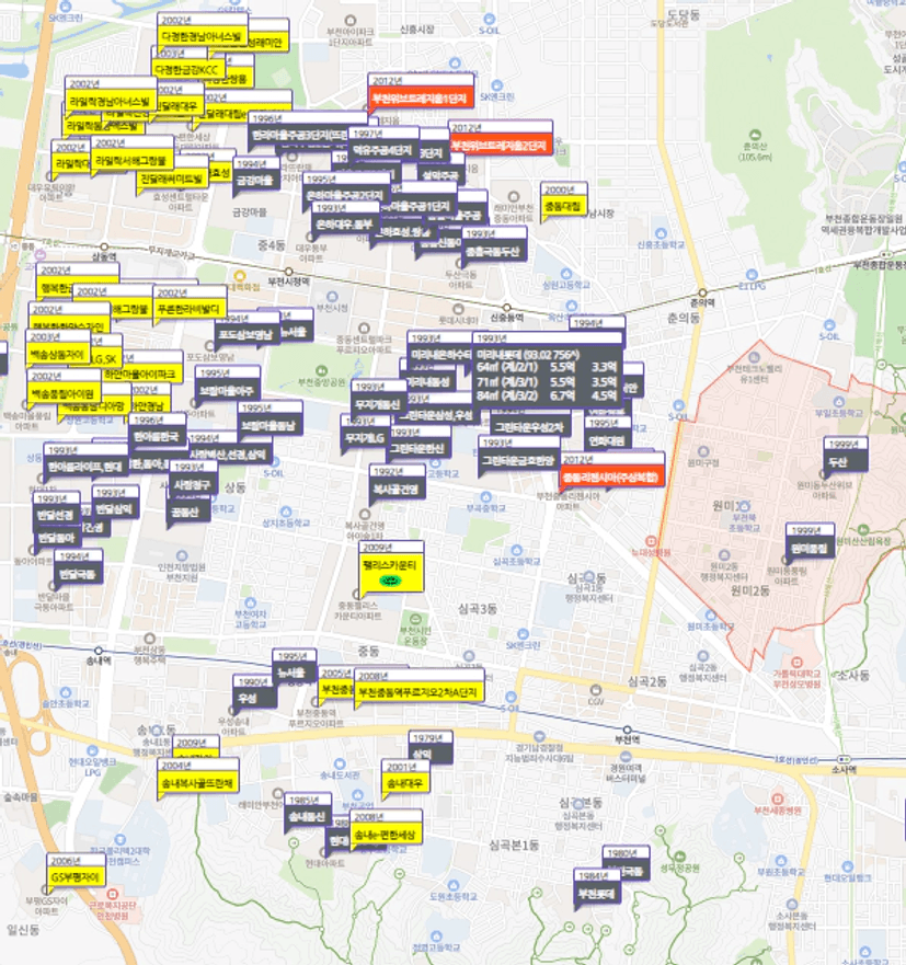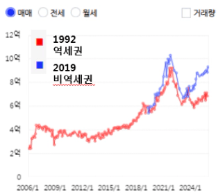 80년대 아파트라도 최근 가격 격차를 나타내고 있음을 알수 있습니다.
