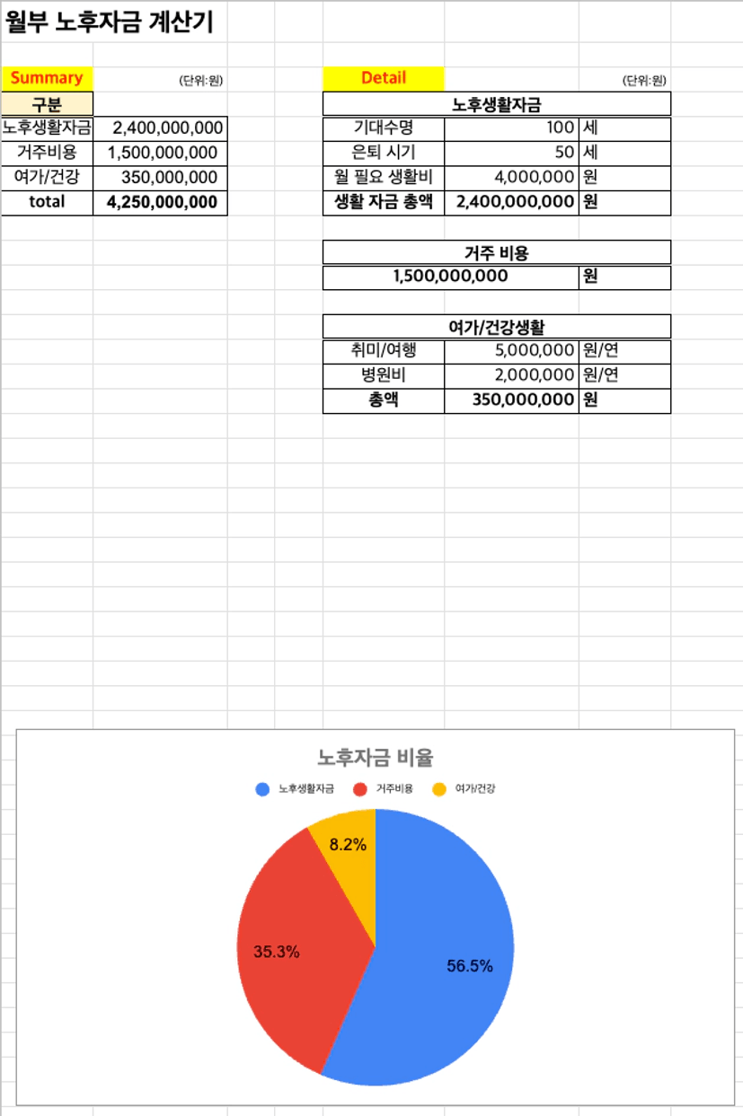 노후 자금, 목표 금액 계산을 위한 은퇴시간 계산기,