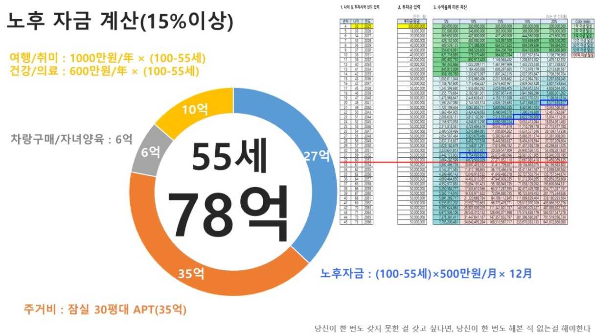 깊이가 느껴지는 비전보드 입니다! 삶의 방향에 대해 진지하게 고민하고 생각하신 것이 보여요! 78억!! 엽테크님은 쉽게 넘을 듯!!!