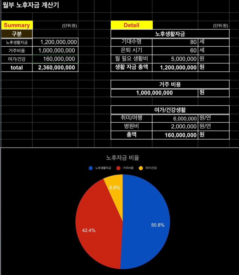 노후 자금, 목표 금액 계산을 위한 은퇴시간 계산기,