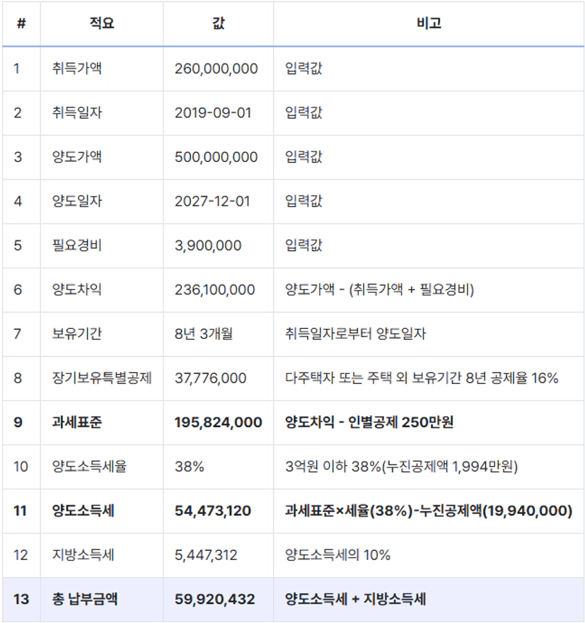 ✔️양도가 5억 매도차익 2.4억 양도세 6천만원 세후 수익 1.8억