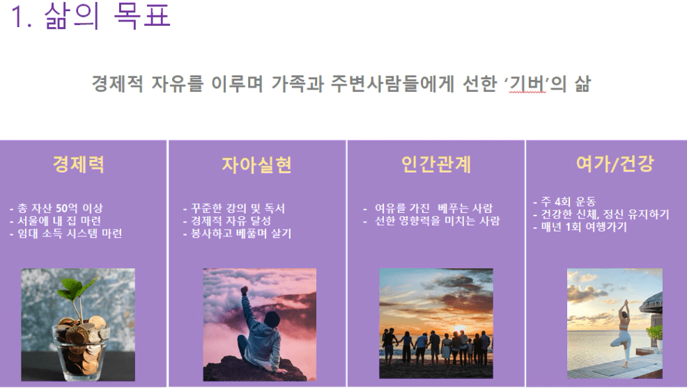 경제적 안정을 통한 행복한 삶이 오는 그날까지 아자아지! 비전보드의 목표 모두 달성된다!