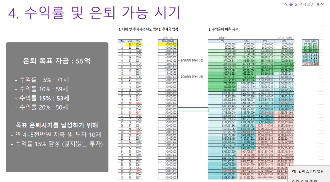 STEP4. 수익률에 따른 은퇴 가능 나이