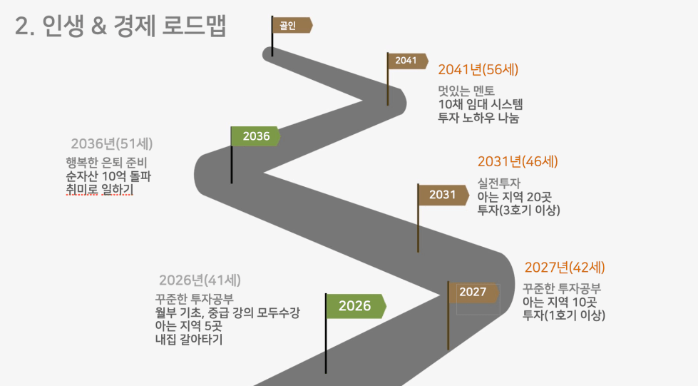 비전보드 실현을 위해 5년 단위로 20년 계획을 세워봅시다. (2025/ 2030/ 2035/ 2040/ 2045년)