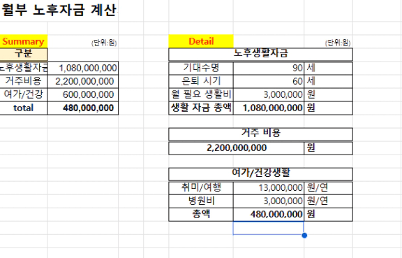 필요한 노후 자금 합계 ▶ 총 37억 6천 만원