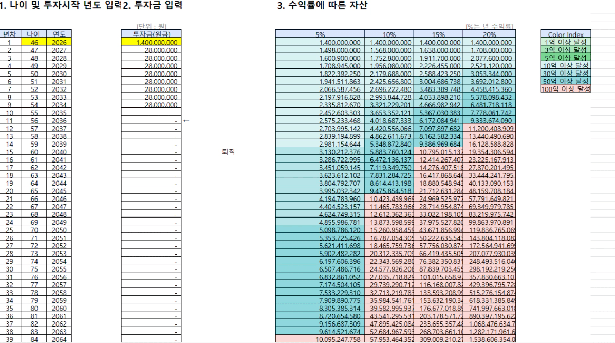 STEP4. 수익률에 따른 은퇴 가능 나이