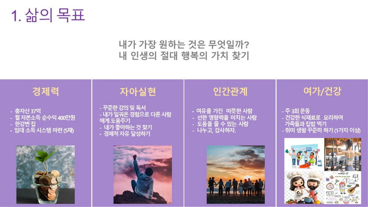 사분면에 4번은 보통 미디어 계통이네요.^^ 작성하신 대로 꼭 이루시길 바랍니다~