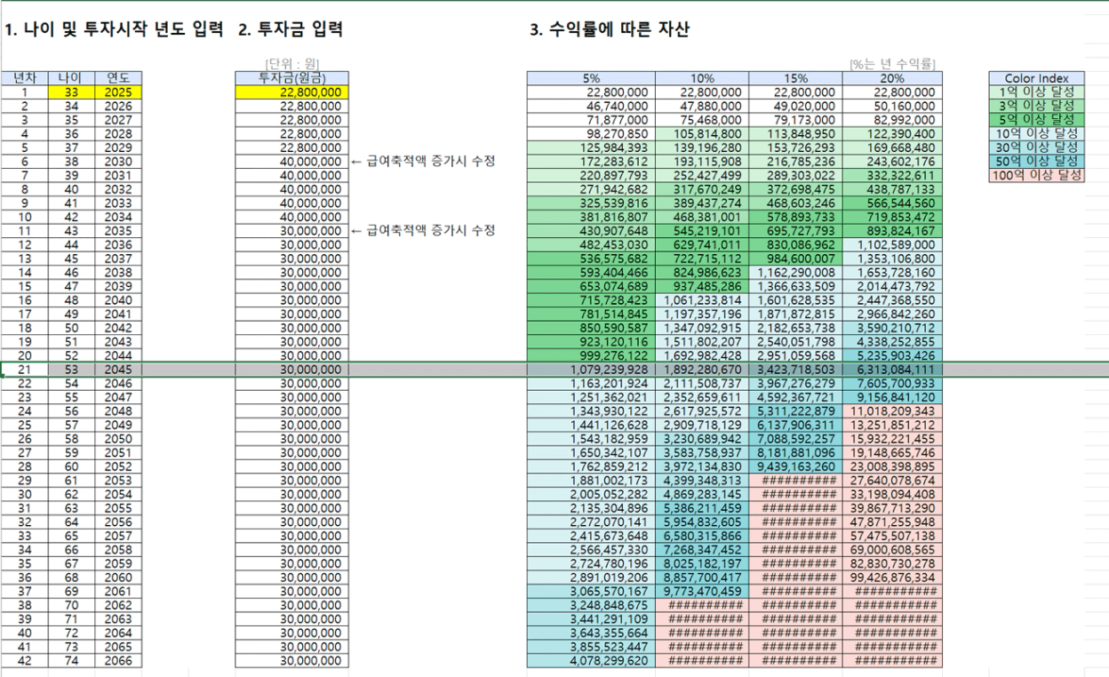STEP4. 수익률에 따른 은퇴 가능 나이