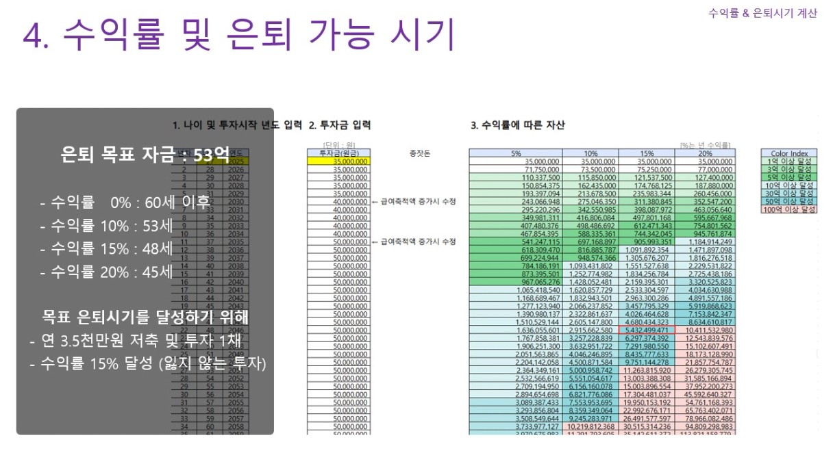 STEP4. 수익률에 따른 은퇴 가능 나이