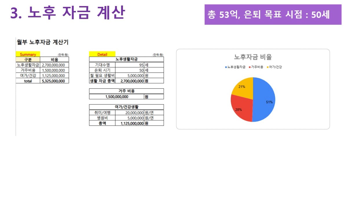 필요한 노후 자금 합계 ▶ 총 53억