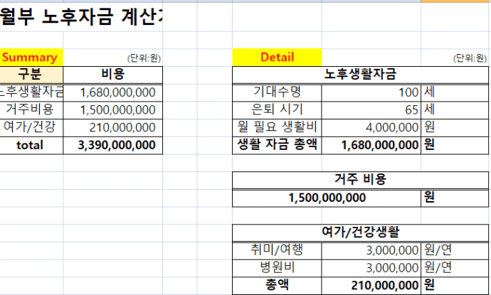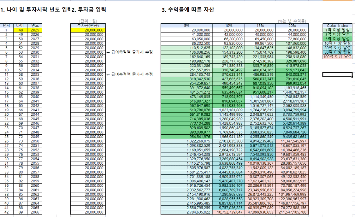 목표 금액 33.9억 (현재 나이 48세, 연저축액 2000만원에서 시작)