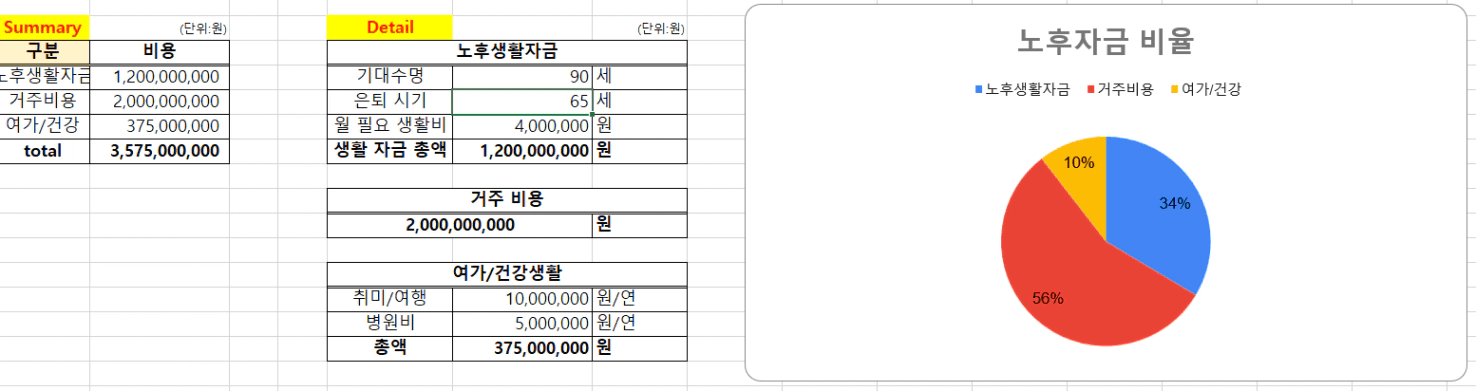 - 400만원 X 12개월 X 25년(은퇴 이후 여생)