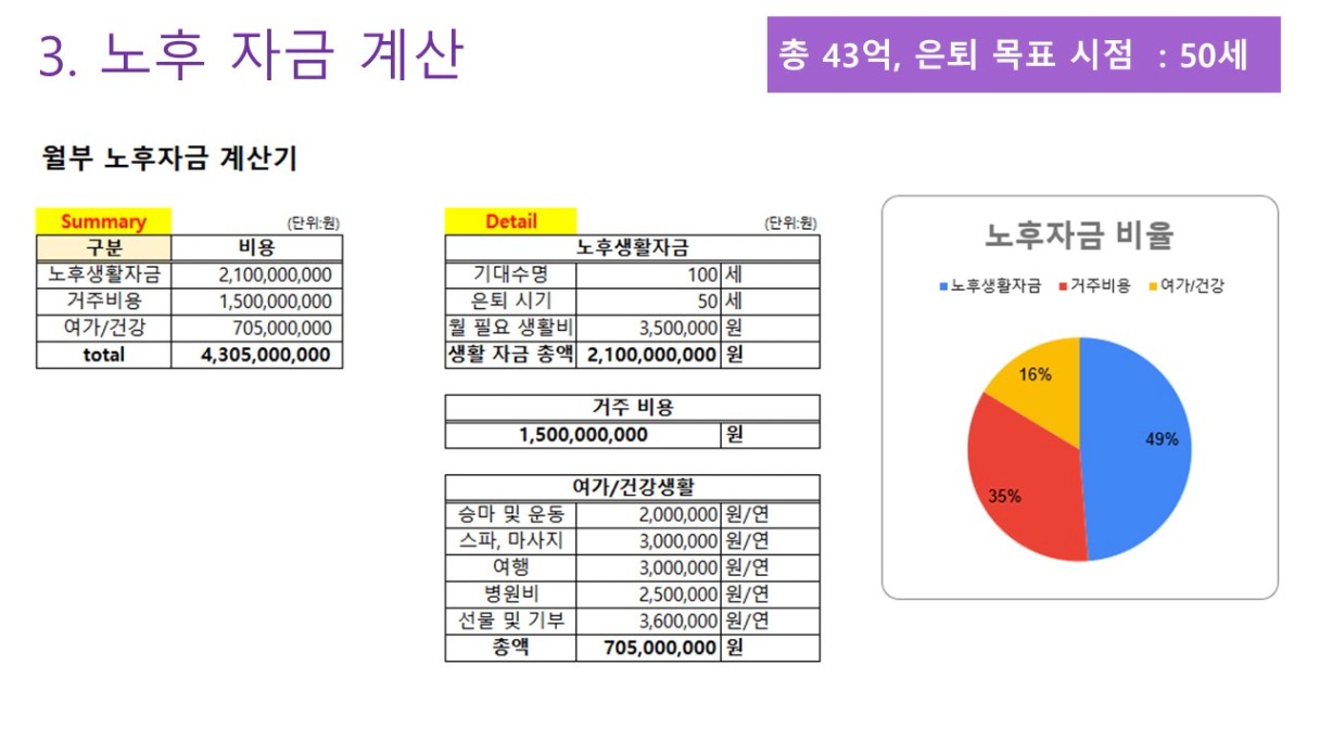 필요한 노후 자금 합계 ▶ 총 41억 6천 만원