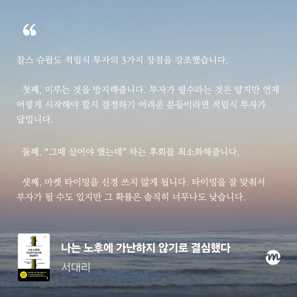 안정적이고 가치 있는 것을 꾸준히 사서 모으는 것이 결국은 성과를 만든다.