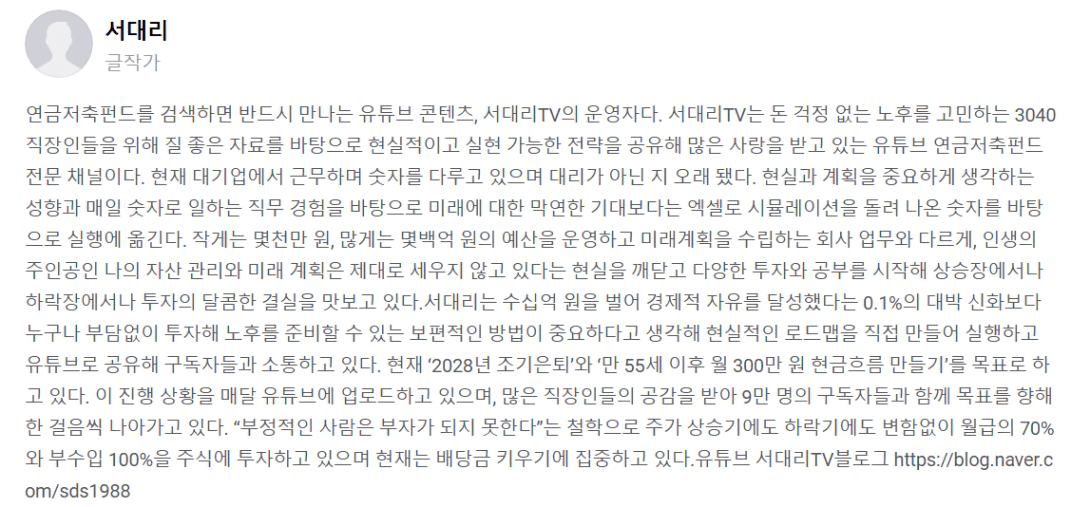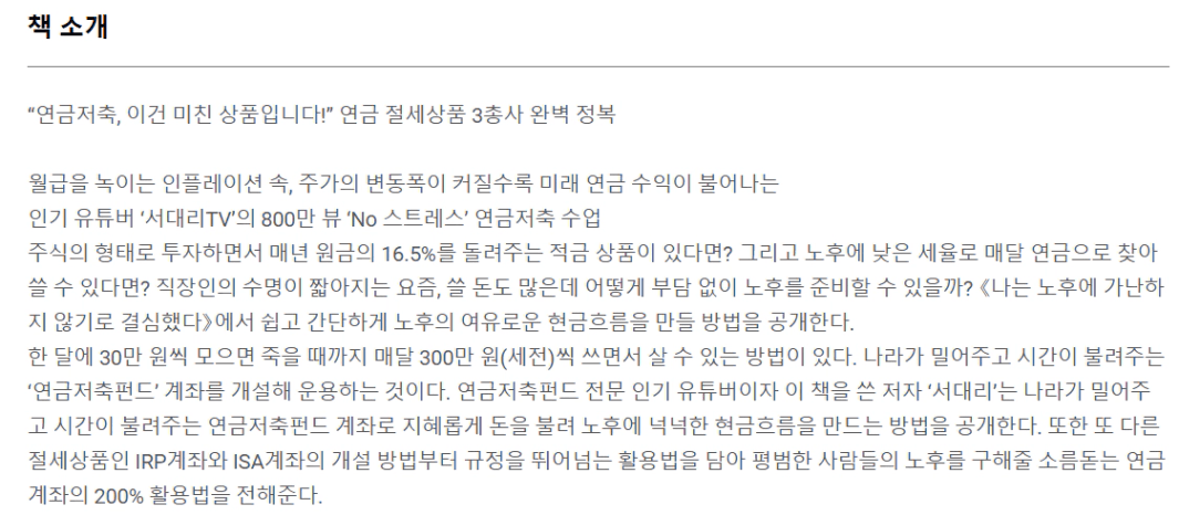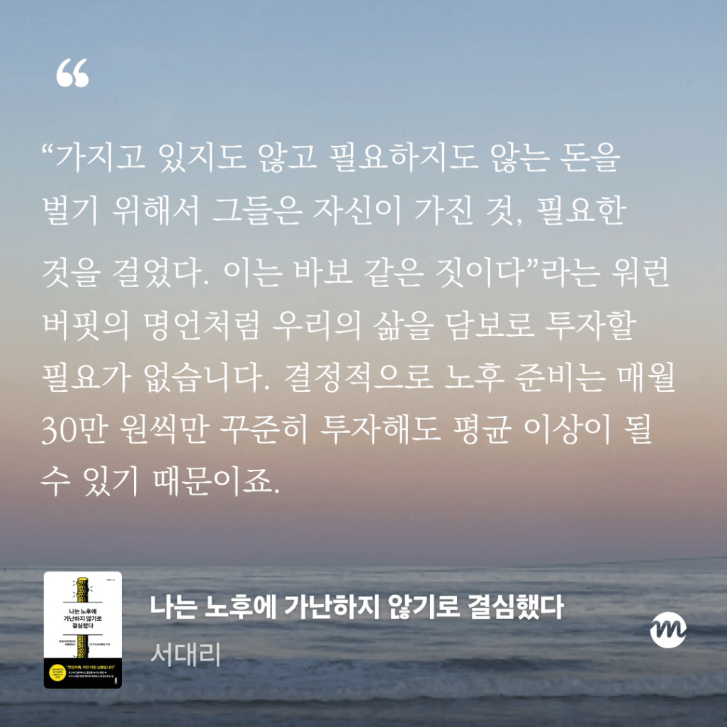 책 제목(책 제목 + 저자) : 나는 노후에 가난하지 않기로 결심했다+서대리