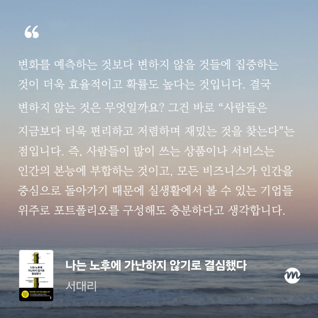 변화를 예측하는 것보다 변하지 않을 것들에 집중하는 것이 더욱 효율적이고 확률도 높다는 것