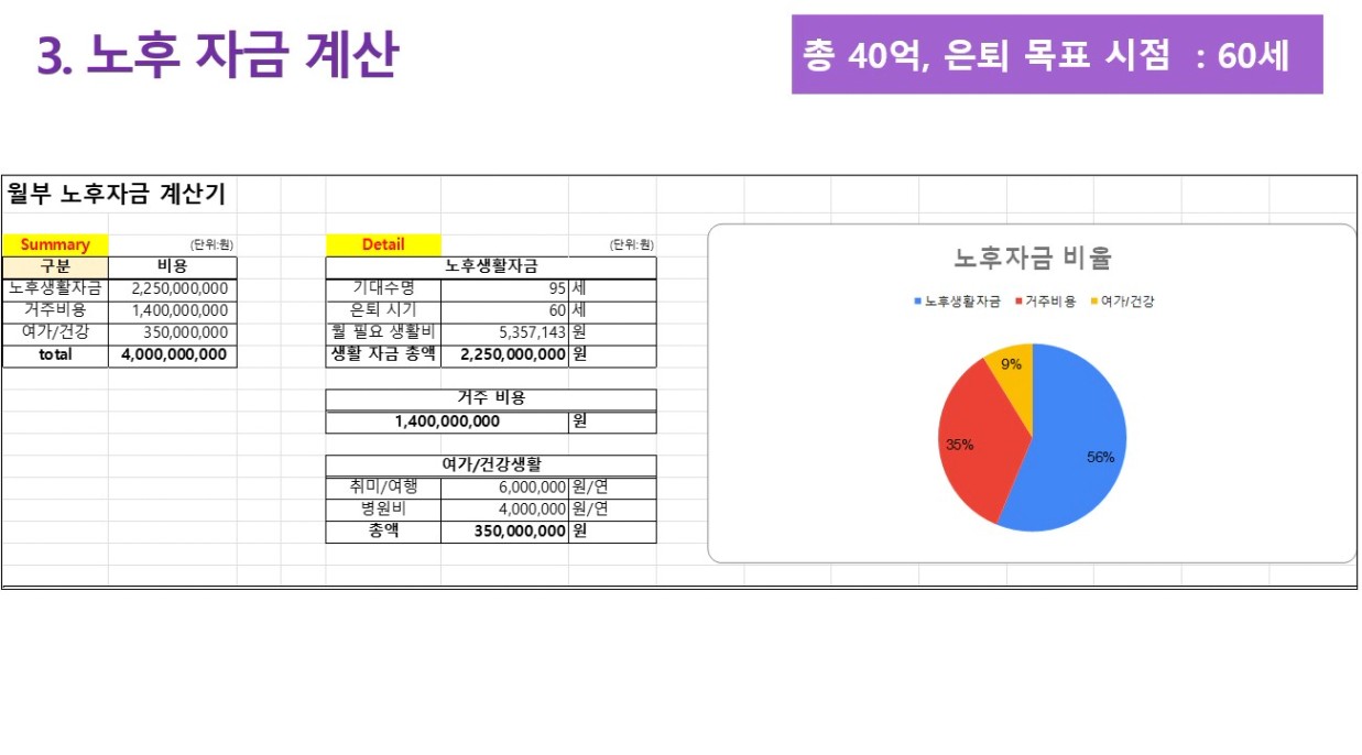 꿈을 실현하기 위해 필요한 노후 자금은 얼마인지 예산을 계산해보세요.