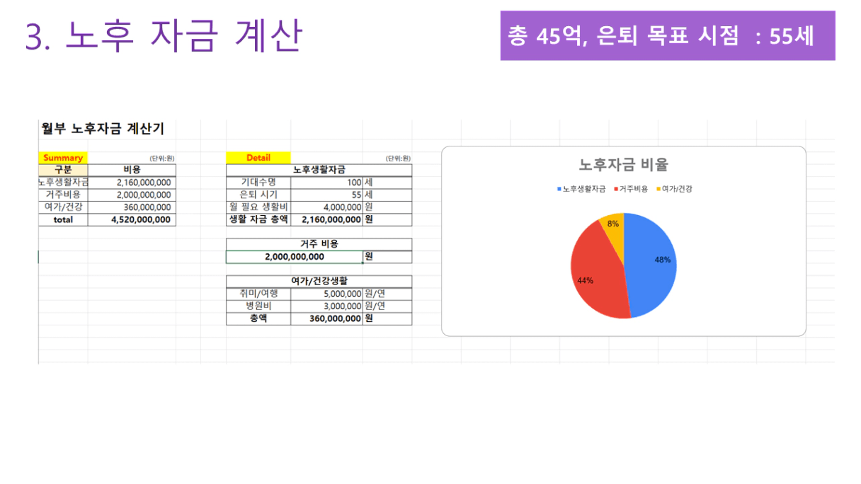필요한 노후 자금 합계 ▶ 총 45억 2천 만원