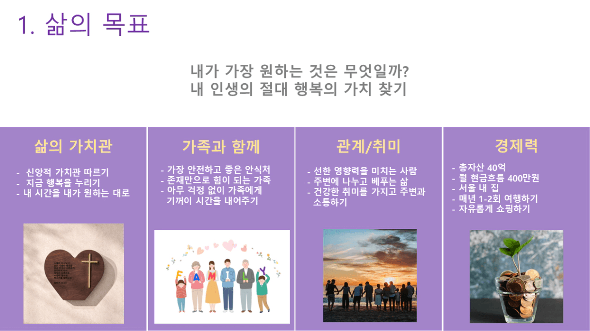 시간이 지나 흥분을 가라앉히고 책을 통해 부자들의 조언을 듣고 현실을 가만히 보니 제가 원하는 삶은 거창한 것이 아니었어요.
