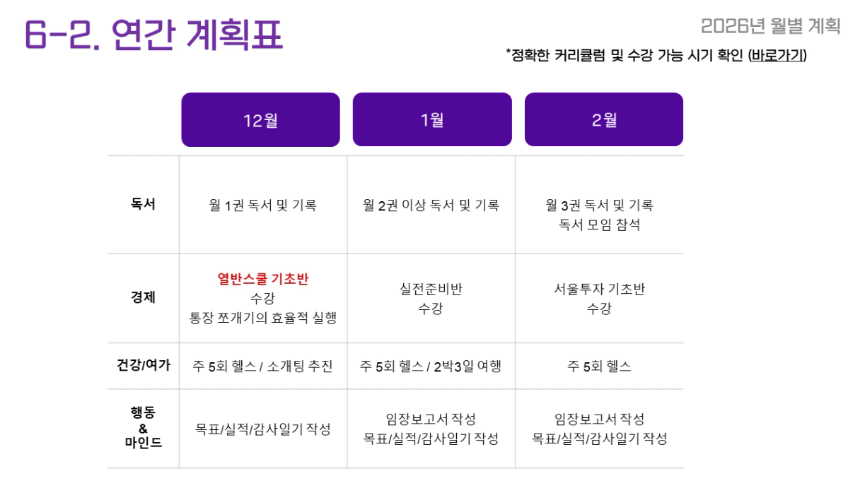 • 독서: 직업 관련 책 1권 읽고 직업에서의 성장 아이디어 3개 정리, 투자 관련 도서 2권 읽고 기록 남기기