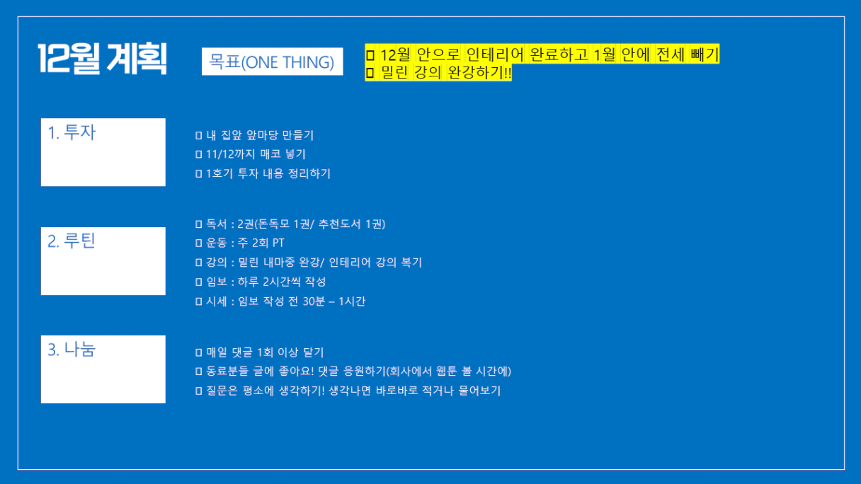 11월 투자까지 너무 고생하셨어요!!! 이번한달도 같이 잘 달려봅시다!!