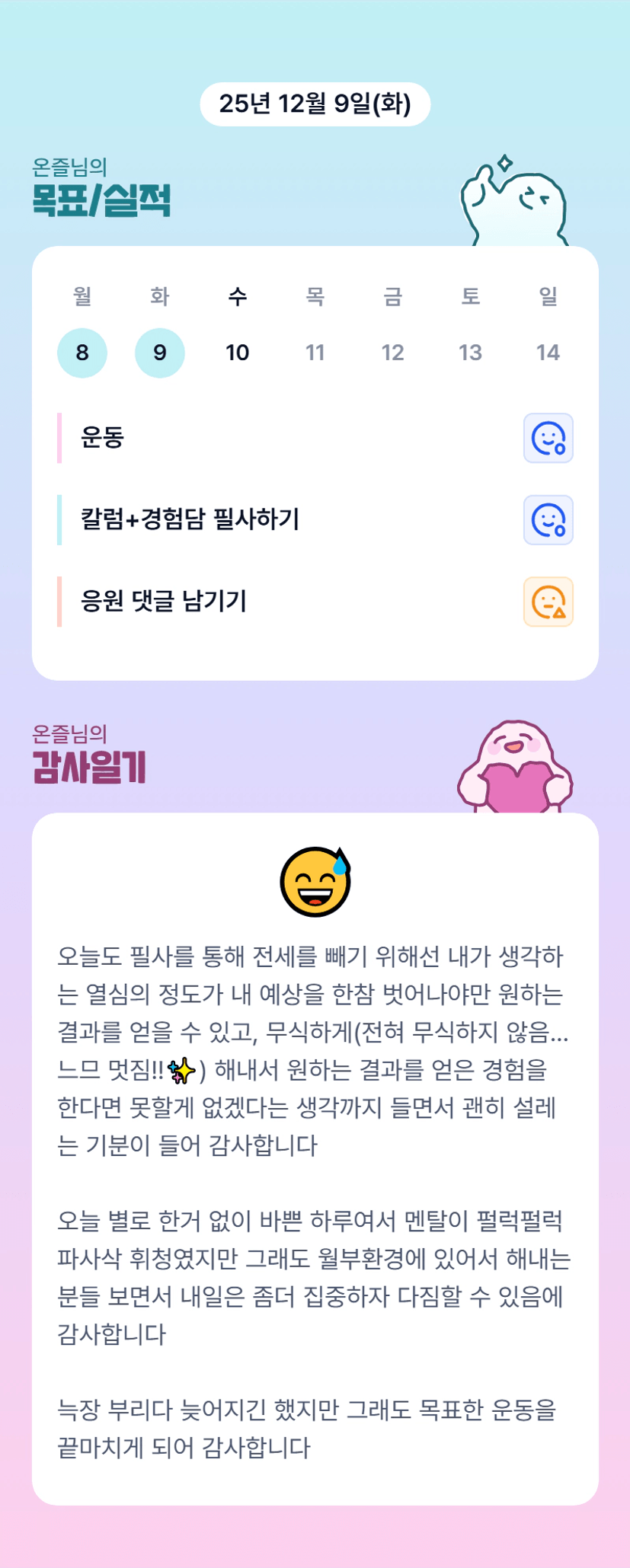 온즐님. 목실감 내용이 너무나 공감이 많이가서 댓글달아요~ 항상 좋은글 잘보고 인사이트 받고 있습니다~ 12월 한달도 화이팅!!