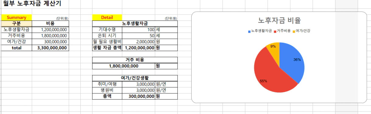노후 자금, 목표 금액 계산을 위한 은퇴시간 계산기,
