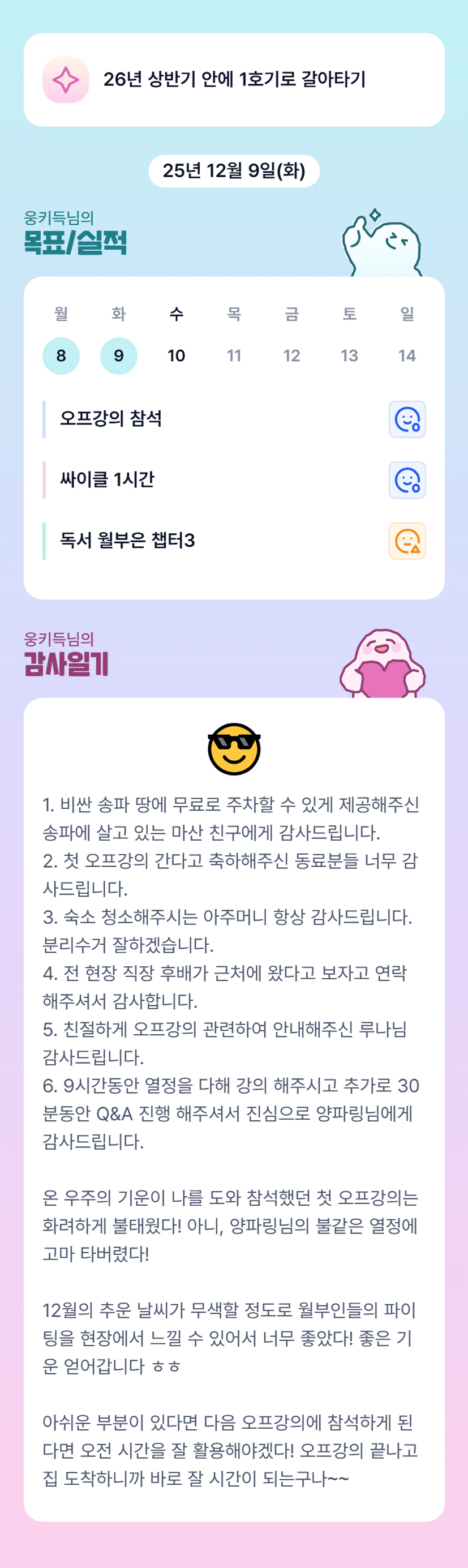 키득님~ 다음 오프강의 또 도전~~~ㅎㅎㅎ 오늘도 화이팅 응원드려요!!