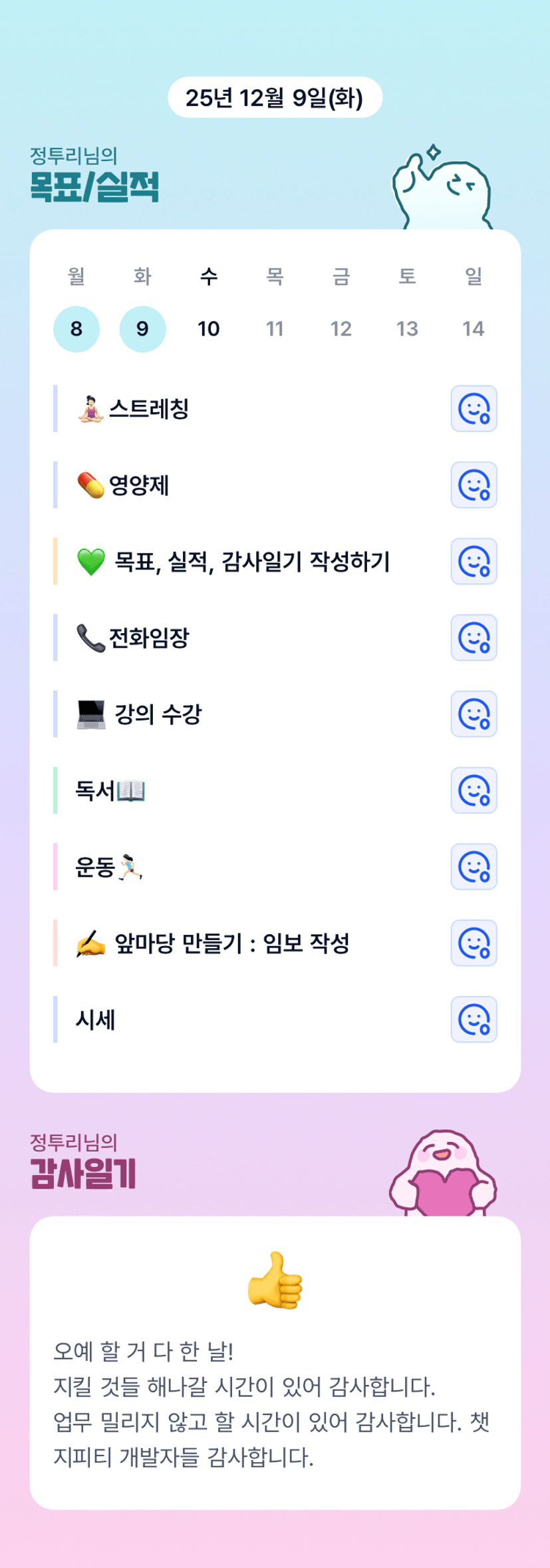 오 완료가득! 투리님도 지피티와 친하시군요ㅋㅋ 오늘도 화이팅!