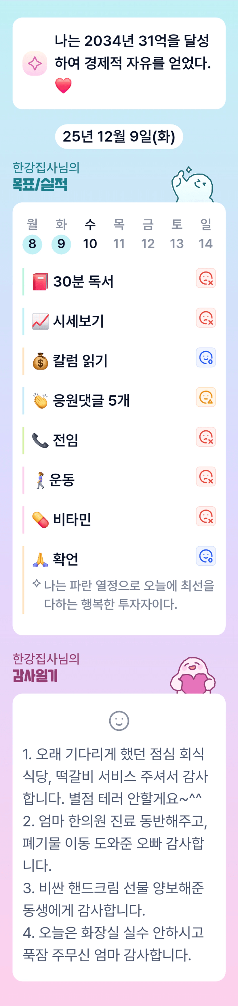 집사님! 어머니 간호 하시면서 항상 열심히 생활하시는 모습이 정말 보기 좋습니다. 오늘도 응원합니다.^^