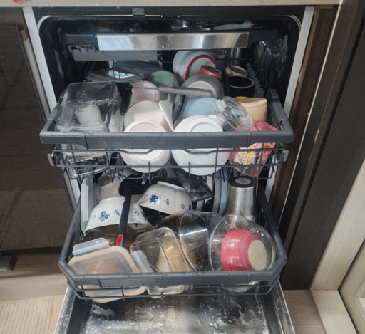 싱크대 속 그릇들은 가득가득 높이 쌓여만 간다.
