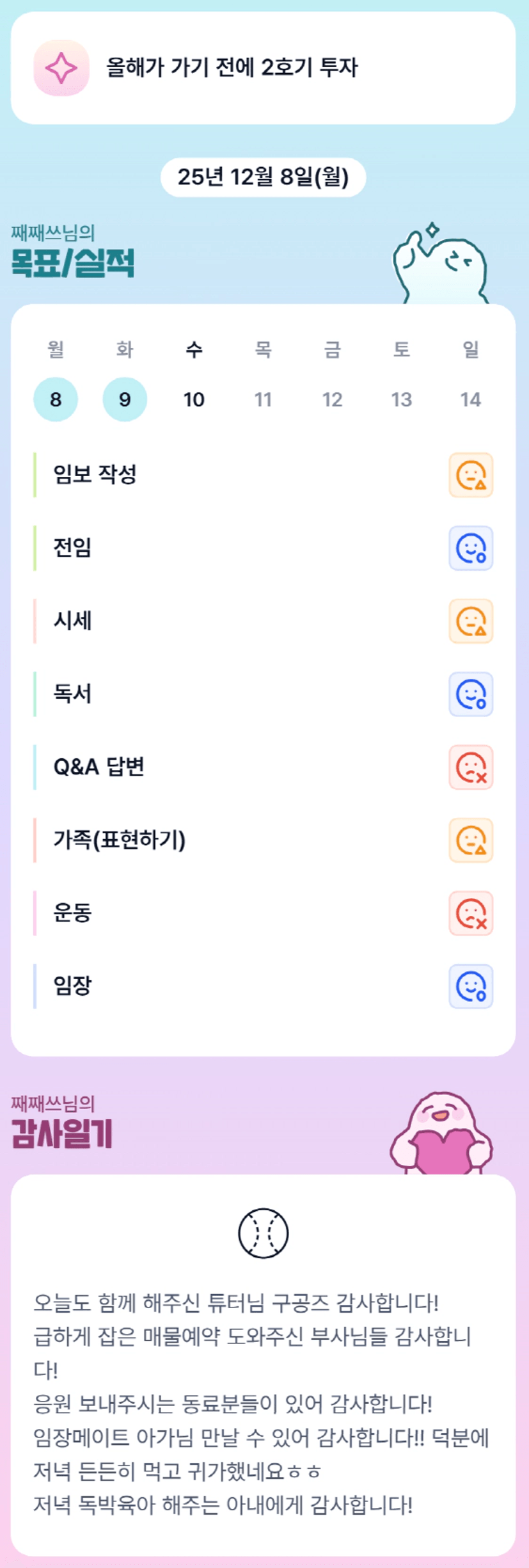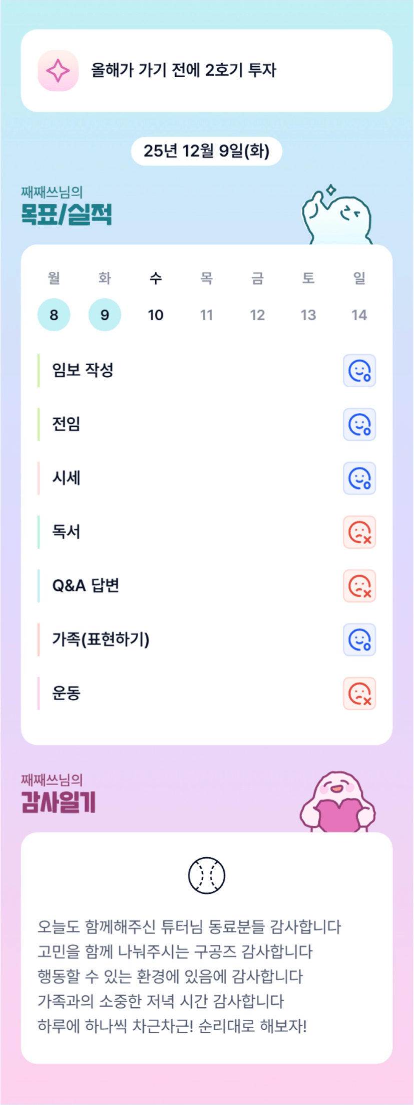 평일에도 매임하시는 째쓰님! 고생하셨어용👍