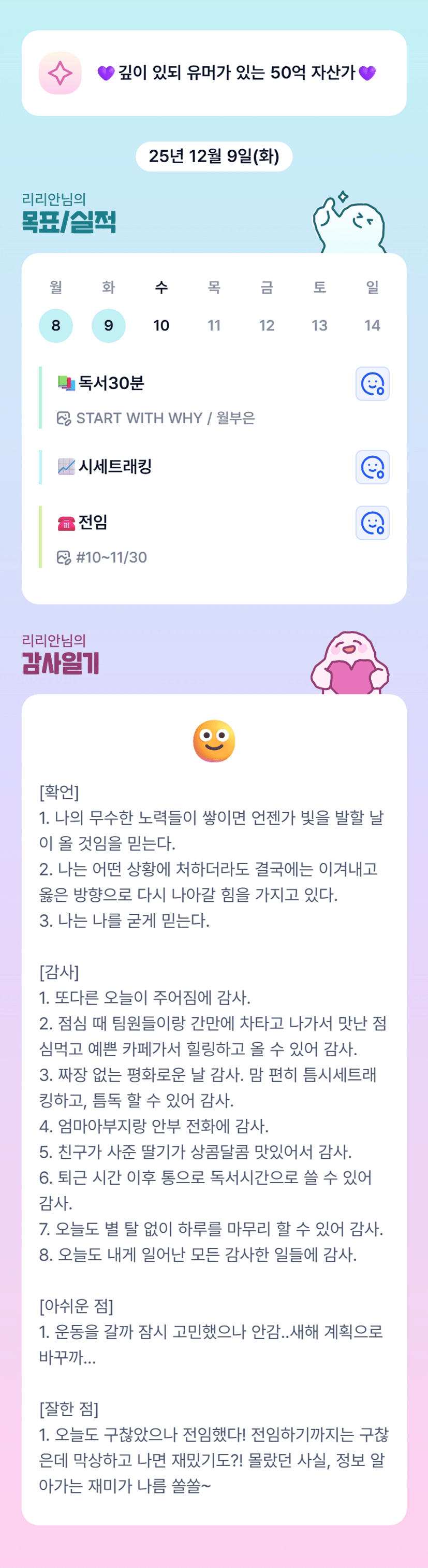 리안님 오늘도 평화로운 하루 화이팅입니당!! 💕