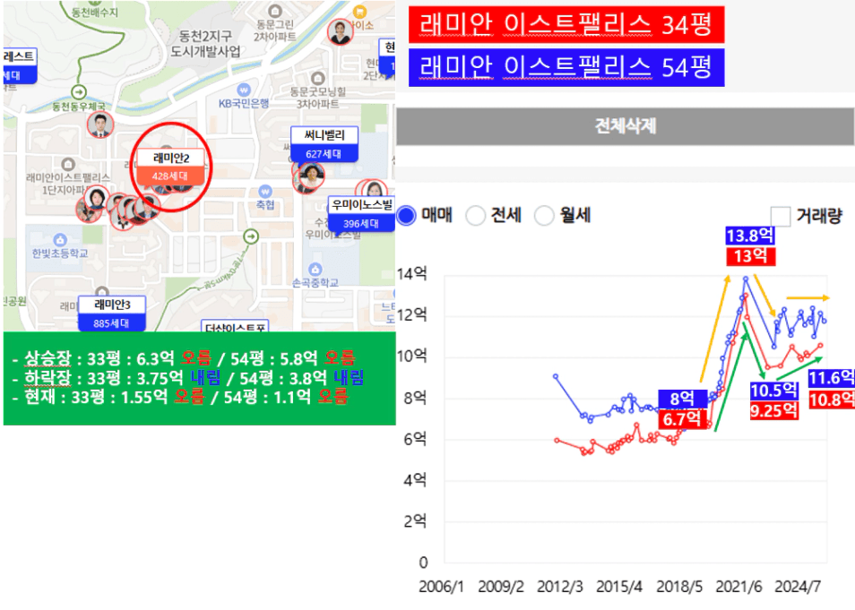 하락장에 54평과 34평과 비슷한 가격으로 내렸고