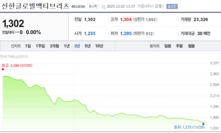 신한글로벌액티브 리츠 주가를 보면