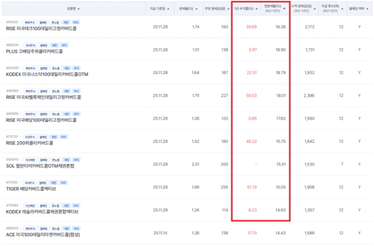 11월 월배당 ETF 분배금도
